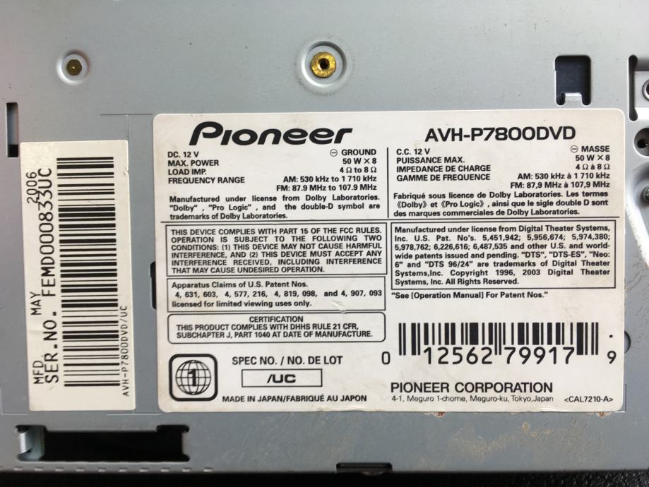 PIONEER AHV P7800 DVD PLAYER TUNER 50x8