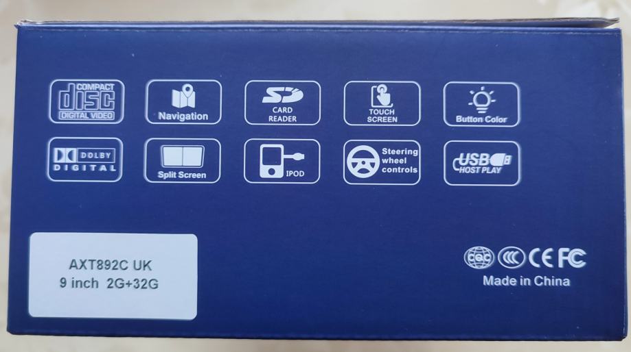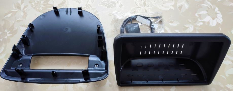 U kompletu je android 12 tablet s ekranom 9", 4 jezgrenim procesorom, 2GB RAM i 32GB ROM, plastični dijelovi za montažu na komandnu ploču, kompletno ožičenje i polica koja se umetne na mjesto starog radija.