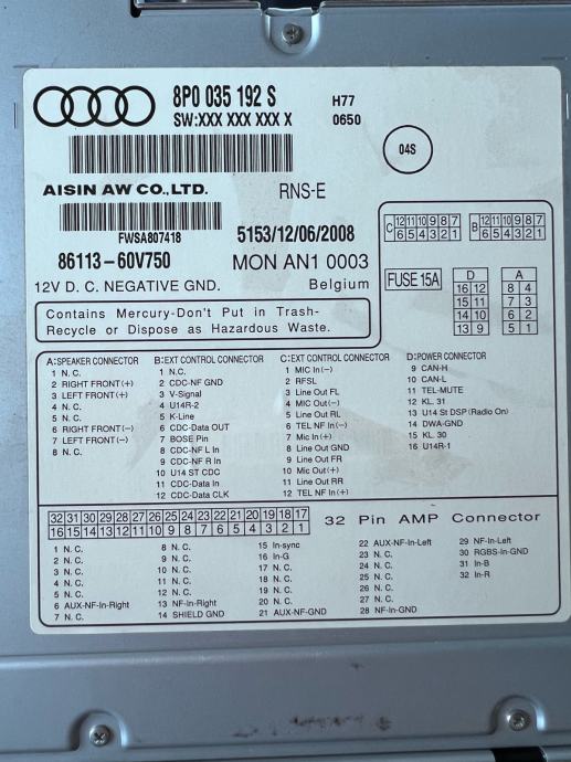 Prodajem RNS-E 192 jedinicu u potpuno ispravnom stanju, demontirana s vozila zbog ugradnje druge.