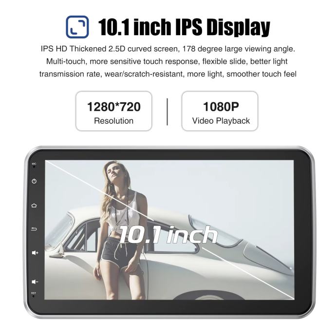 - 10.1" IPS HD zaslon (1280×720) – jasna slika i široki kut gledanja od 178°