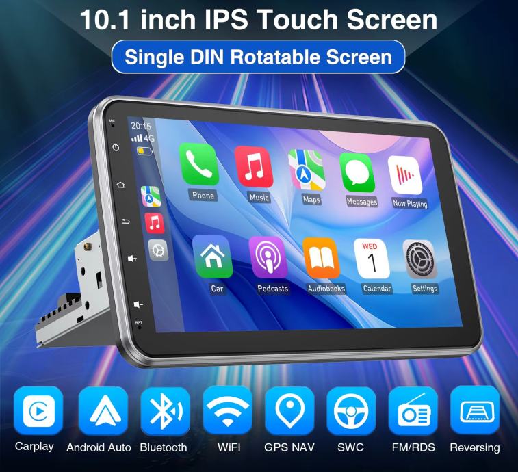 Rotirajući 10.1" Android Auto / CarPlay Auto Radio – 1 DIN, Android 13