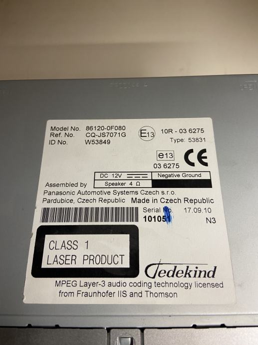 Radio je izvađen iz Toyota Verso godina proizvodnje 2011