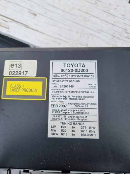 Radio izvadjen iz Yarisa 2007. Potpuno ispravan i u dobrom stanju.