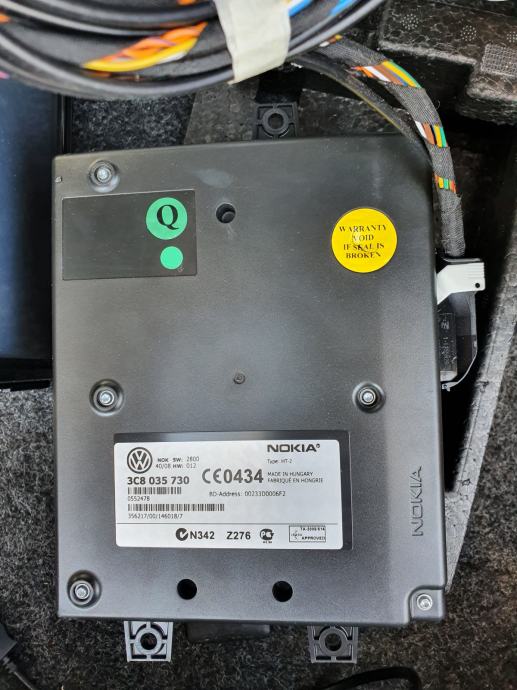 - U kompletu dolazi orig.vw bluetooth modul, kablovi sa konektorima,mikrofon i postolje koje se putem čička učvrsti ispod sjedala