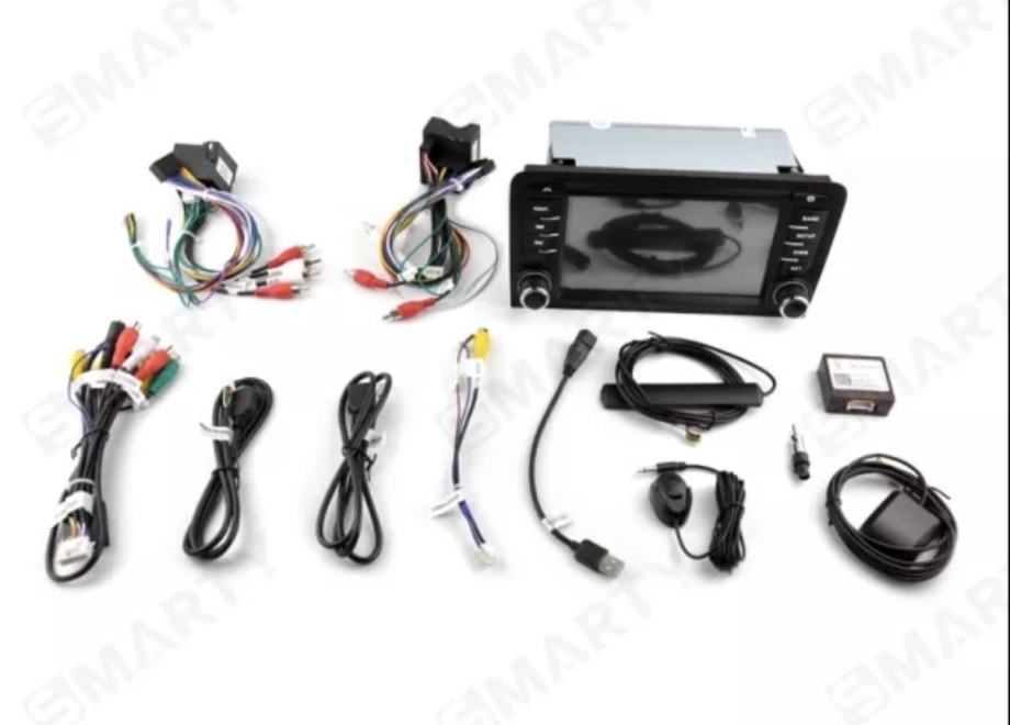 Prodajem rabljeni Android radio uređaj namijenjen za Audi i VW vozila. Radi se o 2-DIN headunit uređaju s touchscreen zaslonom koji podržava navigaciju, reprodukciju glazbe, telefon i ostale multimedijalne funkcije. Uređaj dolazi s kompletnim setom kabela i konektora potrebnih za ugradnju, uključujući napojni kabel s konektorima, antenske adaptere, USB kabel i ostale priključke, tako da je sve što je potrebno za instalaciju već priloženo.