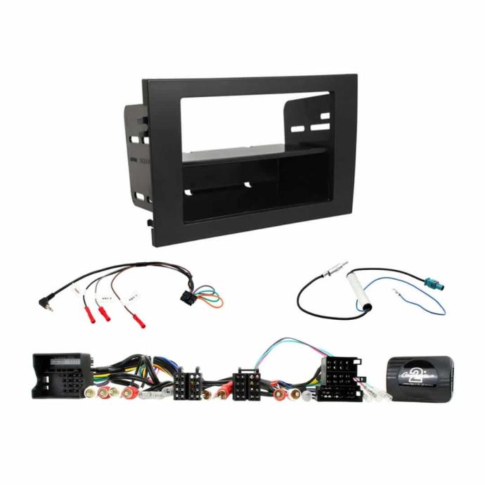 1DIN Instalacijski komplet za ugradnju multimedije u Audi A4. Isporučuje se s crnom jednostrukom/dvostrukom DIN maskom, CAN-Bus sučeljem za upravljanje komandama na volanu (Quadlock i ISO razboji), adapterom za antenu i univerzalnim priključkom. *Napomena - Za nepojačane, polupojačane ili BOSE pojačane sustave. Nije kompatibilan s modelima s digitalnim pojačalom