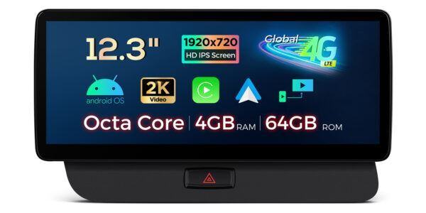 12.3 inch Octa Core 4+64GB Global 4G LTE Android Car Stereo Multimedia Player with Fully-laminated 2K IPS Screen for Audi Q5 (2009-2017).