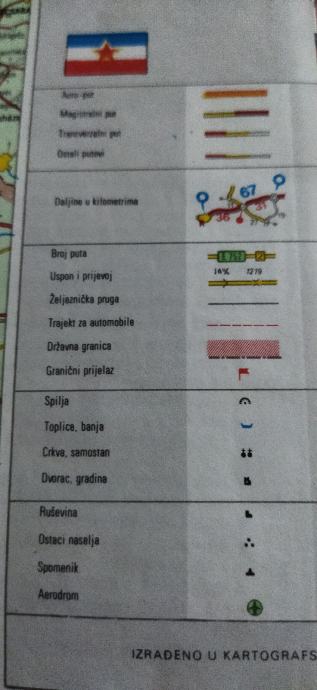 Auto karta Jugoslavije,s oznakama turističkih znamenitosti(spilje,toplice,crkve,dvorci)-3e