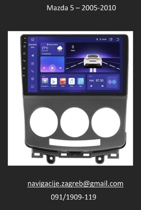 Android auto radio multimedija za MAZDU 5 zajedno s GPSom i navigacijom, kartama cijele Europe, WIFI konekcijom, Bluetooth, USB, spajanje mobitela. itd..