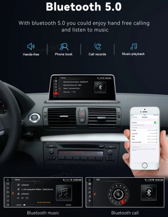 Originalan 2din RADIO ANDROID za BMW 1 E81 E82 E87 E88 zajedno s GPSom i navigacijom, WIFI konekcijom, Bluetooth, USB, spajanje mobitela. itd..