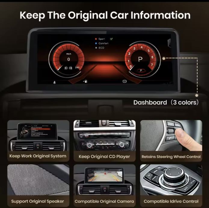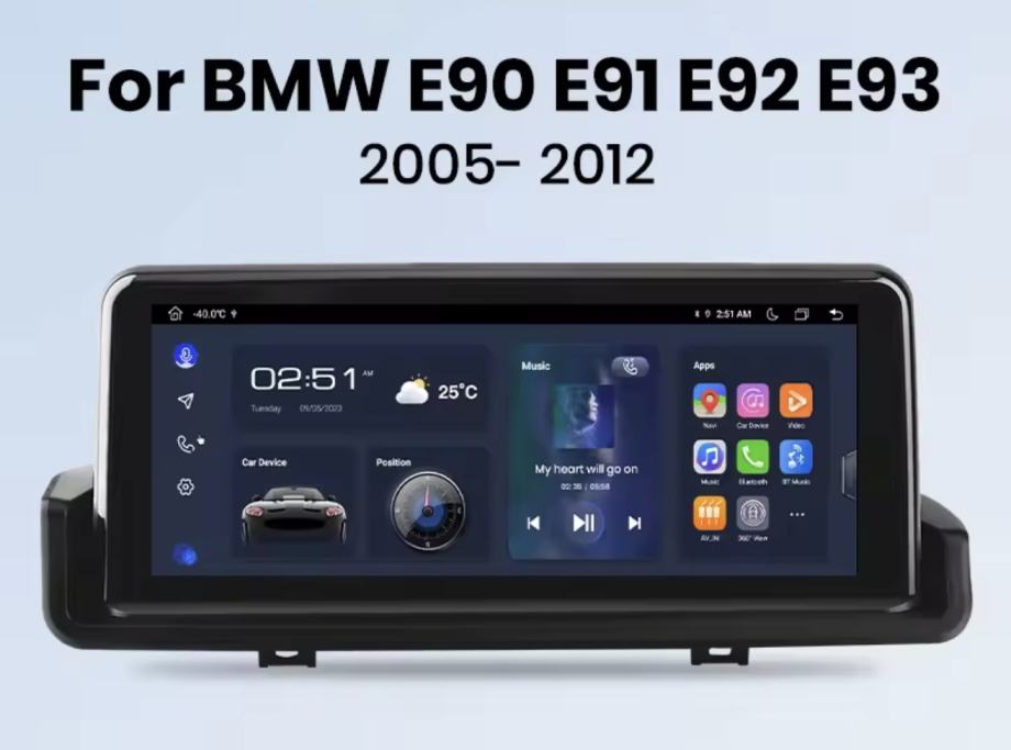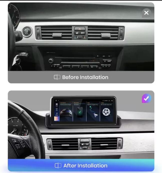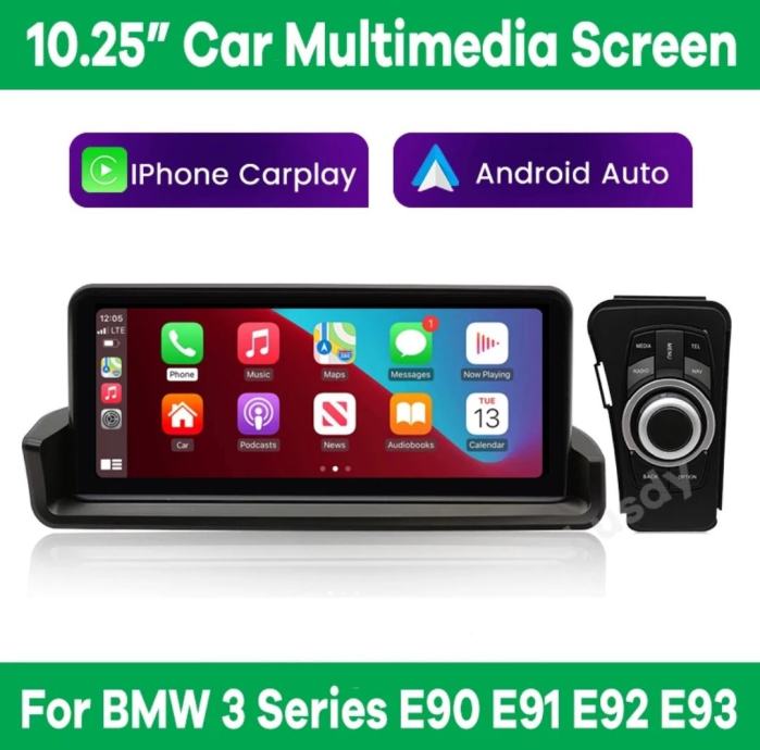 Originalan 2din RADIO ANDROID za BMW seriju 3 E90 E91 E92 i E93 zajedno s GPSom i navigacijom, WIFI konekcijom, Bluetooth, spajanje mobitela, Apple Carplay + ANDROID AUTO, originalna parking kamera (opcionalno), itd.