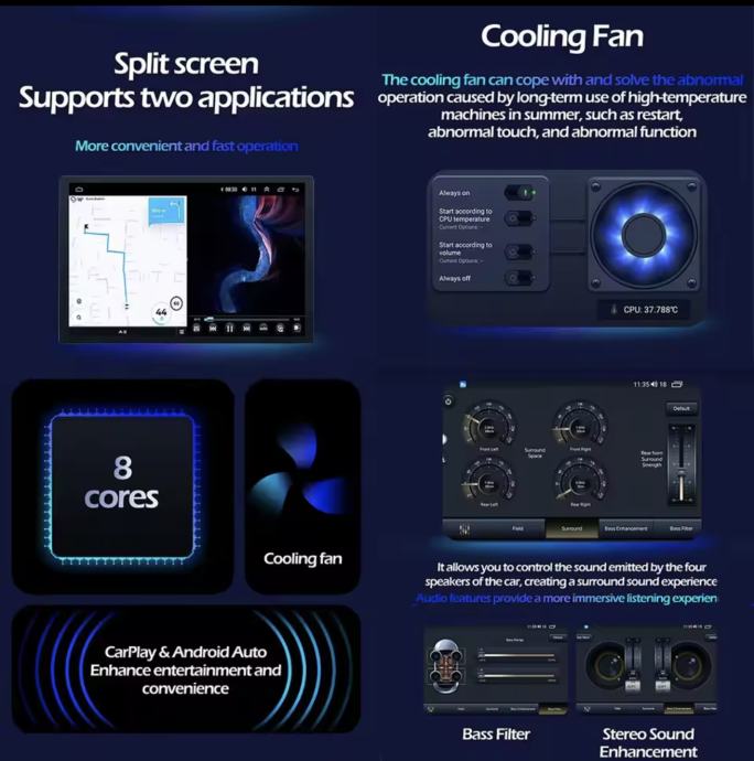 - podržava YOUTUBE, FACEBOOK, INSTAGRAM, GOOGLE, SPOTIFY, ANTI RADAR i sve ostale Android aplikacije