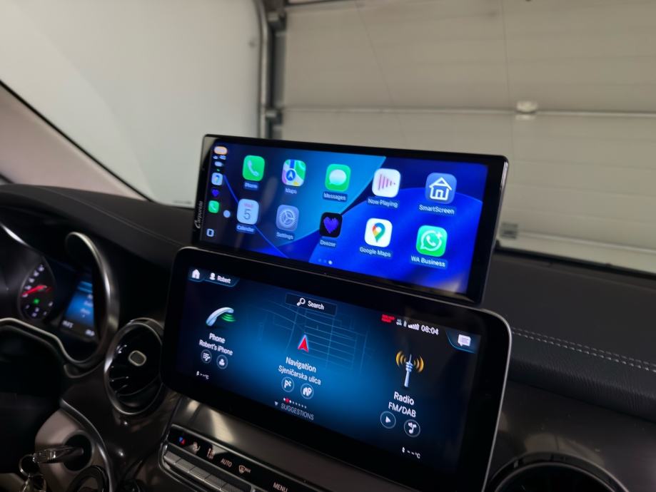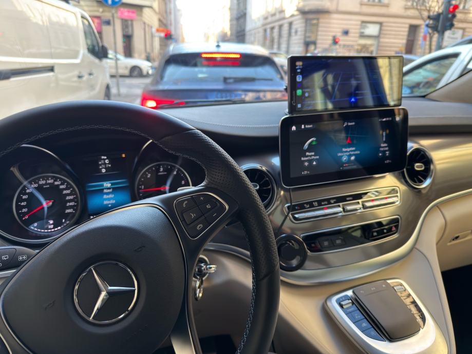 Samo sam probao kako funkcionira ipak ću kupiti mozda kupiti orginal Mercedes carplay opciju za 360€ kad već imam takav ekran u v klasi.