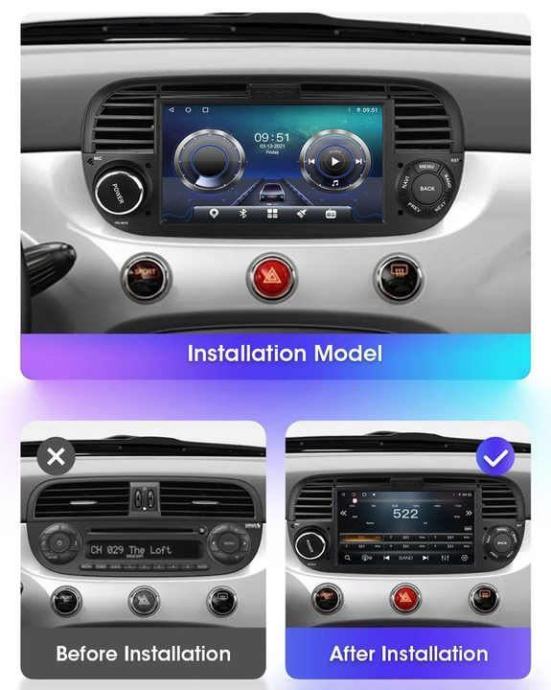 Fiat 500 | 7" IPS | Android 13 | 2GB RAM | 4-Core | DSP | Ts18 Standar