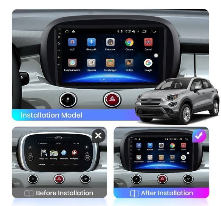 Fiat 500X | 10" IPS | Android 13 | 2GB RAM | 4-Core | DSP | Ts18 Stand