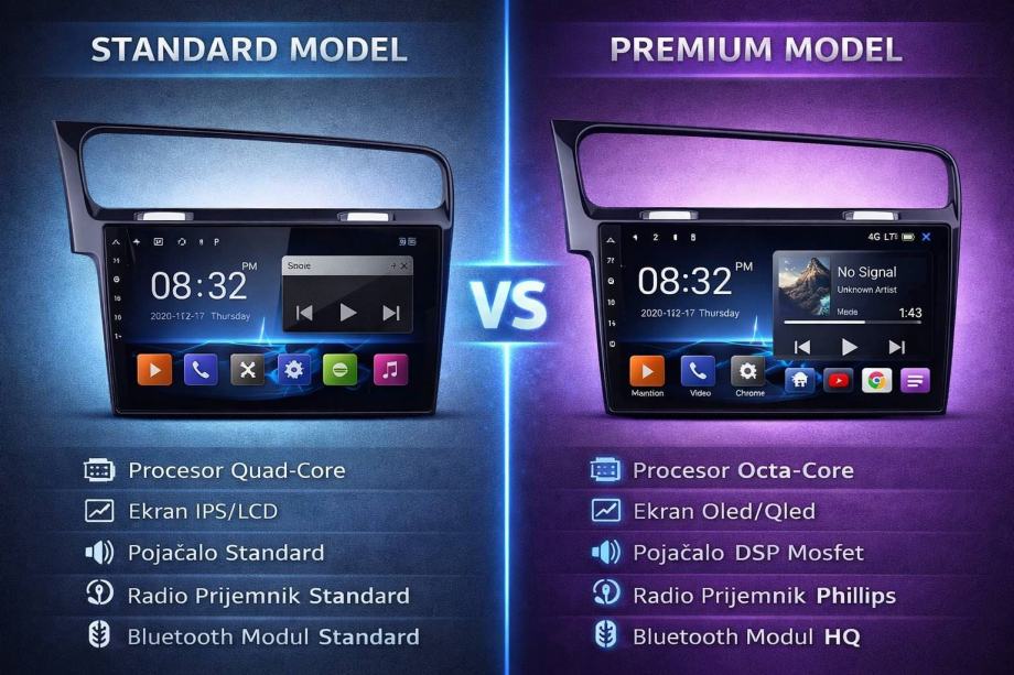 Multimedia uređaj sa GPS navigacijom, posebno dizajniran za navedeni model automobila, kako bi se bojama i oblikom potpuno uklopio u interijer.