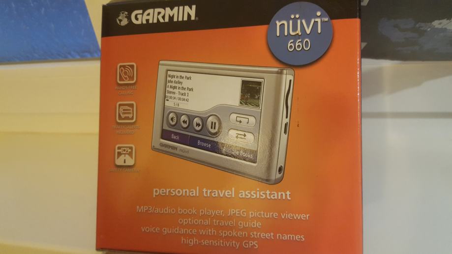 Potpuno ispravni navigacijski uređaj sa uputama u orginalnoj kutiji i tvorničkim djelovima (punjač za auto s nosačem za prednje staklo, USB kabel za PC, kožni etui i nekorištena ljepljiva podloška za konzolu auta)