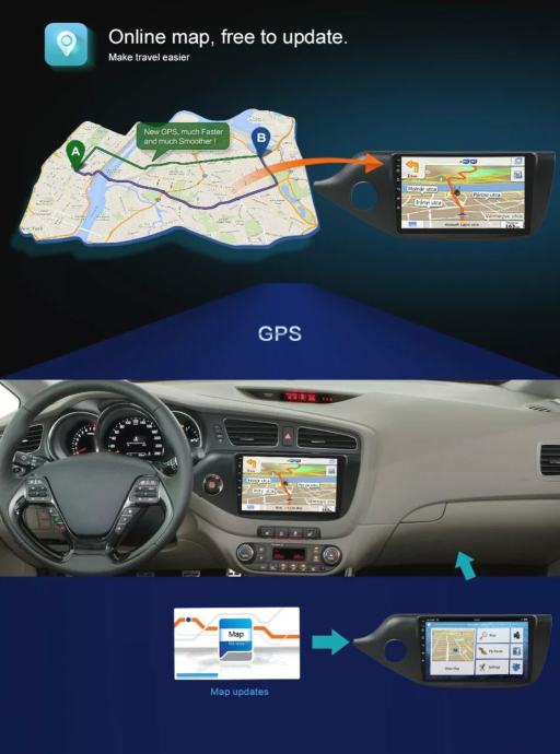 Originalan 2din radio (model 2022) za KIU CEED zajedno s GPSom i Navigacijom, WIFI konekcijom, Bluetooth, USB, spajanje mobitela. itd..