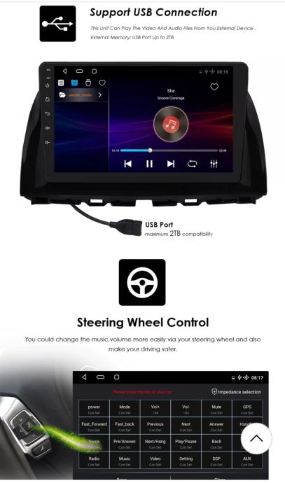GPS + Radio+RDS + Bluetooth + A2DP + TELEFONSKI IMENIK + Punjenje mobitela preko radija + USB & SD + WiFi + AUX + Mirror Link + Mape + INTERNET (YouTube, Google, Facebook...) + HANDSFREE