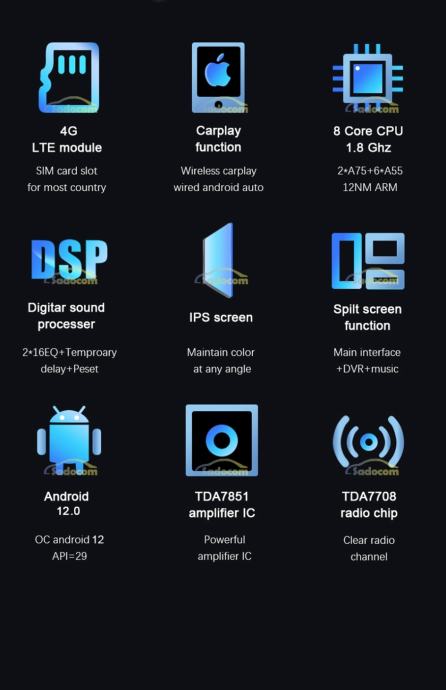 GPS + Radio+RDS + Bluetooth + A2DP + TELEFONSKI IMENIK + Punjenje mobitela preko radija + USB & SD + WiFi + AUX + Mirror Link + Mape + INTERNET (YouTube, Google, Facebook...) + HANDSFREE