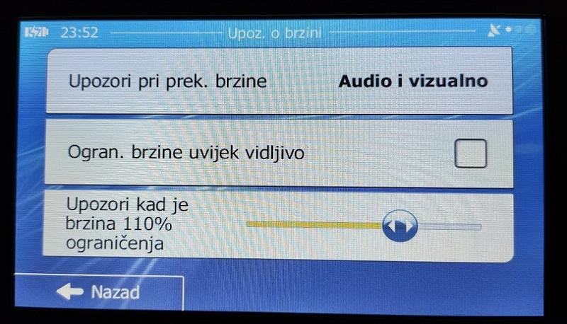 Upozorenja na kamere za mjerenje brzine, upozorenja o prekoračenju brzine ....