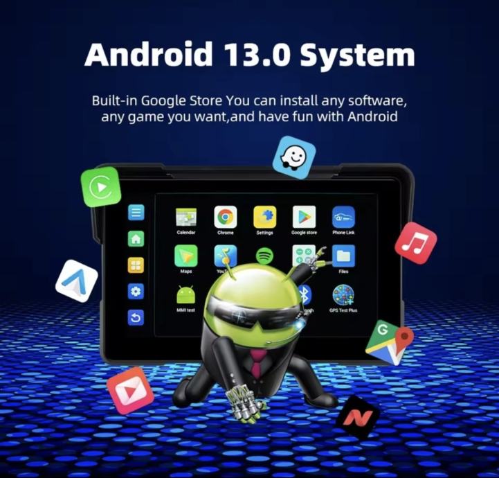 Potpuni Android 13.0 Sustav: Uređaj radi na Android 13.0 sustavu s Google Play Trgovinom. Instaliraj bilo koju aplikaciju koju želiš ( Radar boot, iGO, TomTom ili bilo što da vam je potrebno za voznju motorom.
