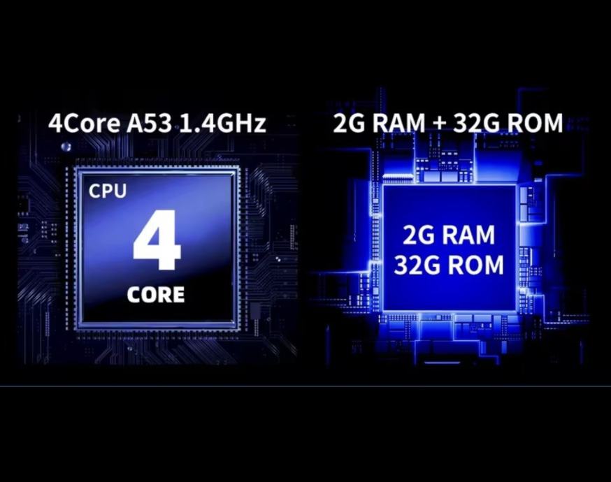 Snažan Hardver: Pokreće ga 4-jezgreni A53 1.4GHz procesor, 2GB RAM i 32GB ROM memorije. Podržava TF kartice do 128GB za multimediju.