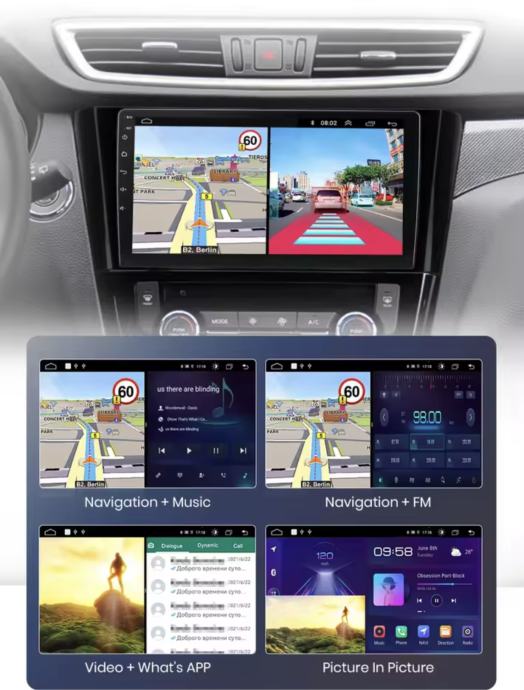GPS + Radio+RDS + Bluetooth + A2DP + TELEFONSKI IMENIK + Punjenje mobitela preko radija + USB + WiFi + AUX + Mirror Link + MAPE cijele Europe + HANDSFREE