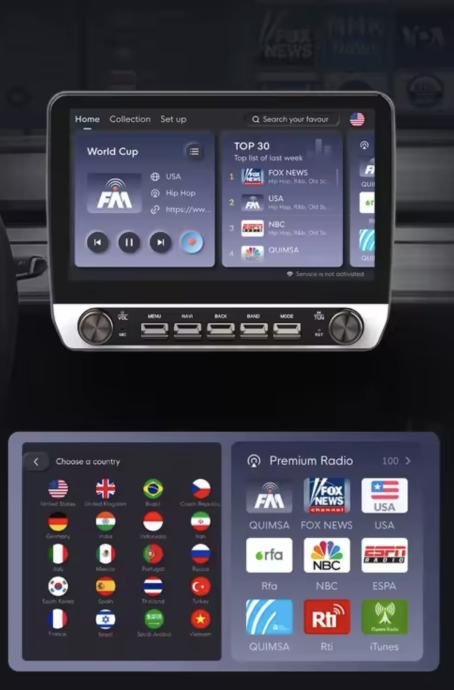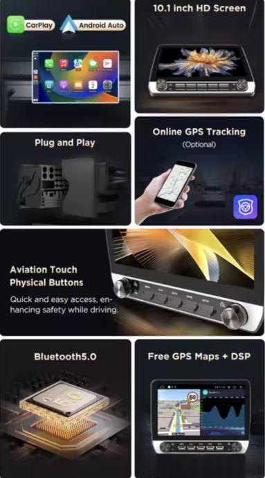 GPS + Radio+RDS + Bluetooth + A2DP + TELEFONSKI IMENIK + Punjenje mobitela preko radija + USB + WiFi + AUX + Mirror Link + MAPE cijele Europe + HANDSFREE
