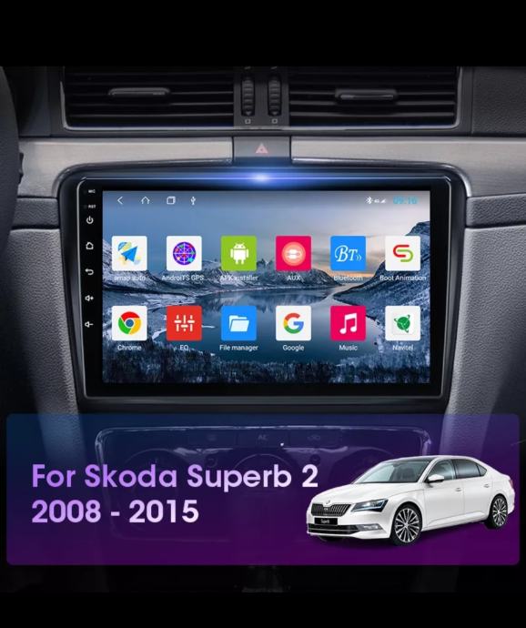 Original Multimedija za ŠKODU SUPERB 2 2008-2015 zajedno s GPSom i navigacijom, kartama cijele Europe, WIFI konekcijom, utor za 4G SIM karticu, Bluetooth, USB, spajanje mobitela. itd..