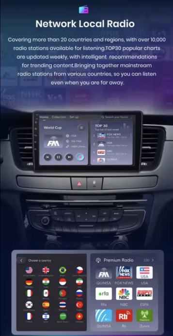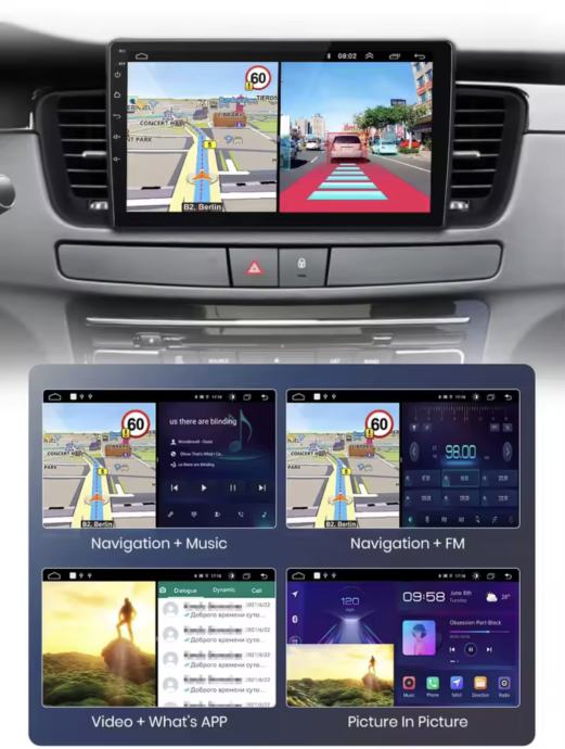 GPS + Radio+RDS + Bluetooth + A2DP + TELEFONSKI IMENIK + Punjenje mobitela preko radija + USB + WiFi + AUX + Mirror Link + MAPE cijele Europe + HANDSFREE