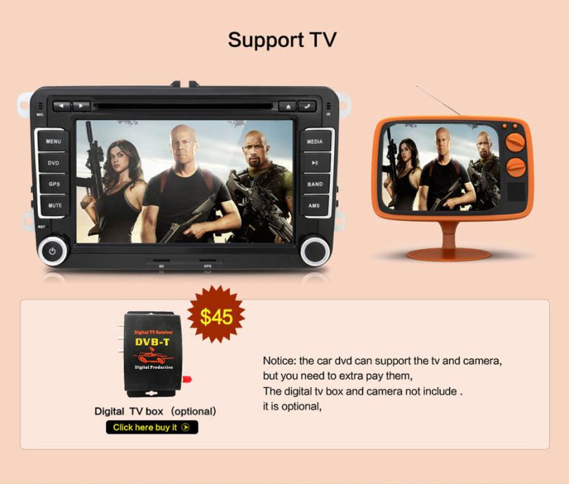 - Ima ulaz za Digital TV Box: Podržava DVB-T/ATSC/ISDB Box (video & audio input)