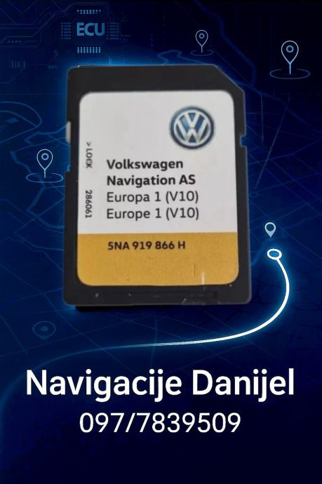 Prodajem najnovije SD kartice 2026 godina za VOLKSWAGEN GOLF 7 PASSAT B8 T-Roc T-Cross Touran Tiguan, Polo i sve ostale VAG aute novije generacije Audi, ŠKODA, SEAT mib1 i mib2