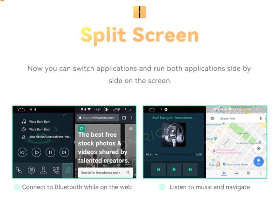 - podržava YOUTUBE, FACEBOOK, INSTAGRAM, GOOGLE, SPOTIFY, ANTI RADAR i sve ostale Android aplikacije