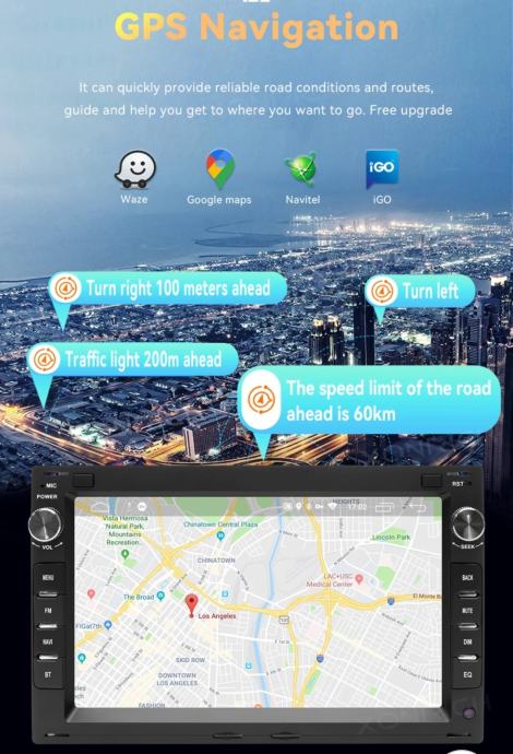 GPS + Radio+RDS + Bluetooth + A2DP + TELEFONSKI IMENIK + Punjenje mobitela preko radija + USB + WiFi + AUX + Mirror Link + MAPE cijele Europe + HANDSFREE