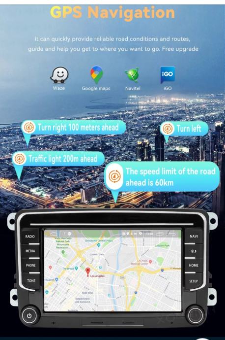 GPS + Radio+RDS + Bluetooth + A2DP + TELEFONSKI IMENIK + Punjenje mobitela preko radija + USB + WiFi + AUX + Mirror Link + MAPE cijele Europe + HANDSFREE