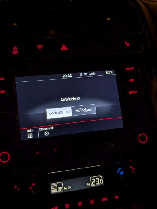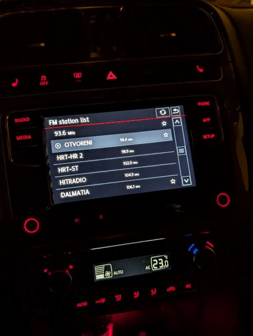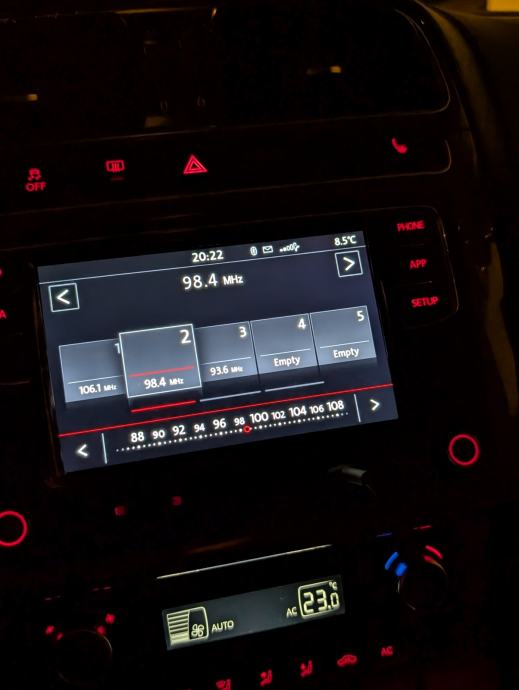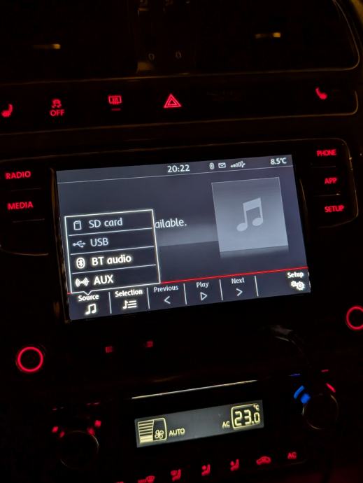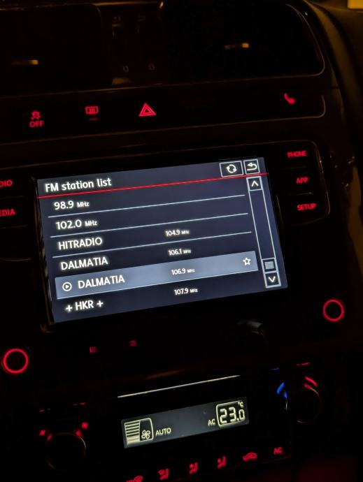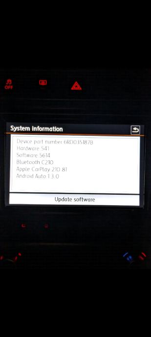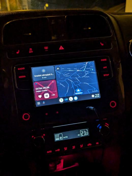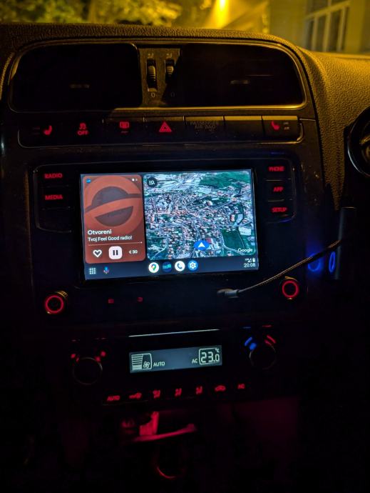 Ugrađen Bluetooth, Android auto i iphone carplay. Podrzava stražnju kameru, parking senzore te tipke na volanu. Nema radio RDS(Automatska promjena stanice)