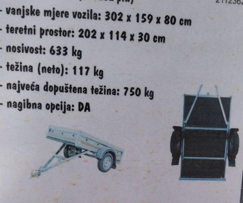 AUTO PRIKOLICA, NOVA, 3.god.registracija, 202/114/30., za 1050. € !