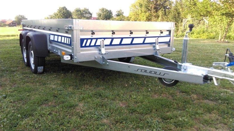 SOLIDUS je moderna linija auto prikolica izrađena od najboljih materijala dostupnih na hrvatskom tržištu. Prikolica je izrađena od lima DX51D + Z275 s cinkovim premazom debljine 275g / m2 (klasa A). Bočne stranice su dodatno ojačane šperpločom od 7mm, zahvaljujući čemu dobivamo veliku krutost i trajnost. Konstrukcija prikolice je pričvršćena vijcima, što znatno olakšava zamjenu oštećenih elemenata. Koriste se vijci klase 8,8. Posebni sustav osovina sa šesterokutnim Knott profilima također omogućuje mekšu apsorpciju udara, poboljšava udobnost i sigurnost vožnje. Prikolica je rađena na komponentama poznatih tvrtki (KNOTT, Steelpress itd.)