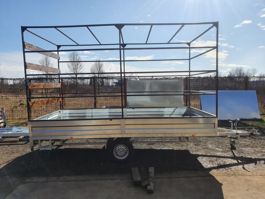 Standardna auto prikolica A2500/1300dužine sanduka 2500 mm, širine 1300 mm i visine 350 mm. Mogućnost nadogradnje Arnjevi i cerada visine 900mm od poda prikolice boja po želji kupca: 850,00EUR + PDV25%=1.062,50EUR. Toplo pocinčana izvedba sa potpornim kotačem. Profesionalna izvedba sa šasijom i kvalitenim pantovima i zatvaračima. Pod od vodootporne iverice (blažuljka). Zaštićena rasvjeta. Cijena je s PDV25% NAPOMENA PONUĐENA JE PRIKOLICA PO OPISU NE PREMA SLIKAMA! Rok isporuke 35-45 radnih dana