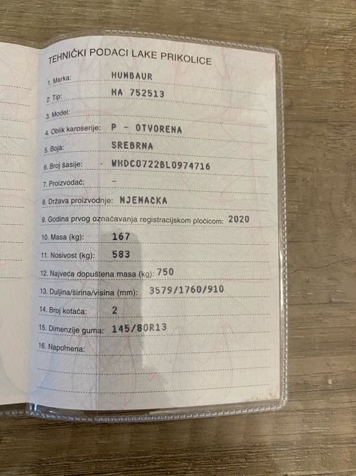 AUTO PRIKOLICA HUMBAUR 2510 x 1310 x 350 mm REG 3 GOD