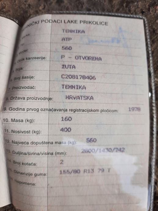 Auto prikolica registrirana do 7 mijeseca 2025 g.uz prikolicu idu kavez sa ceradom i rezervni tocak.