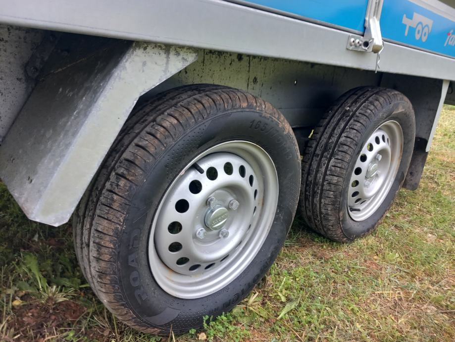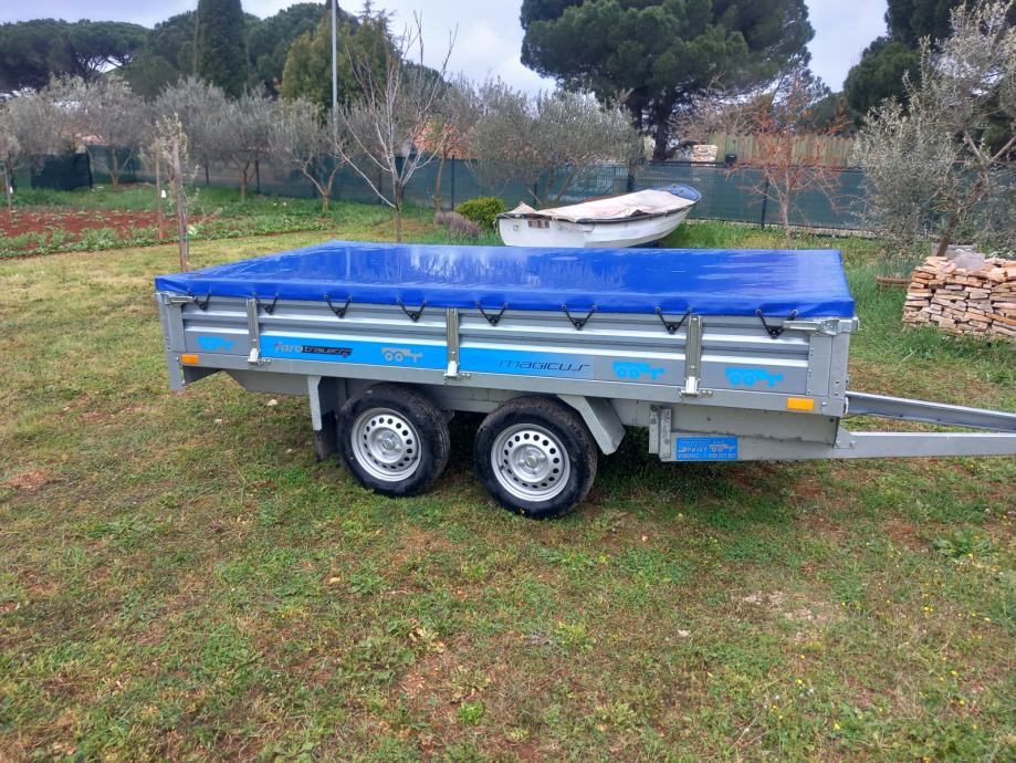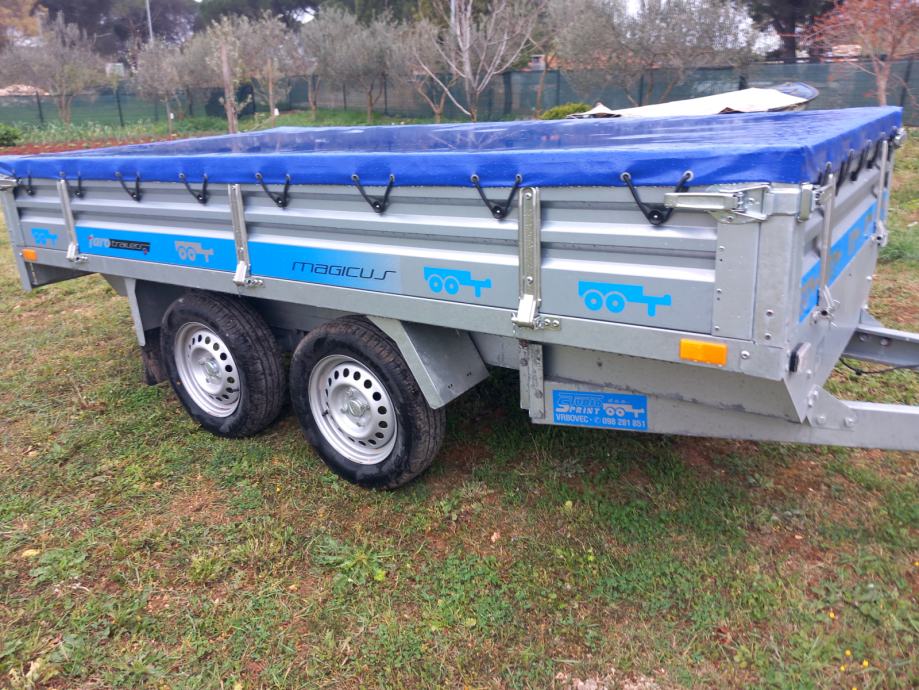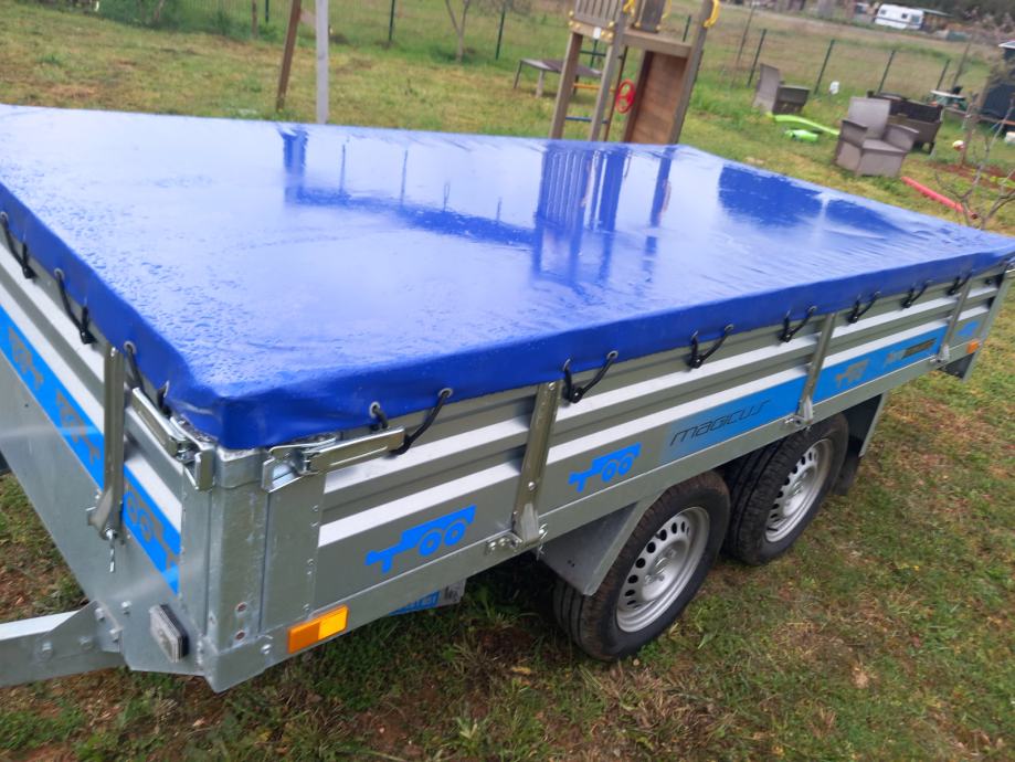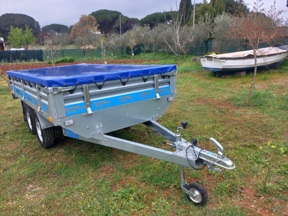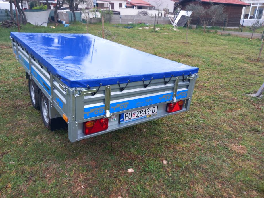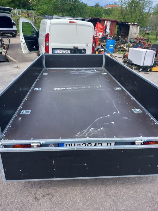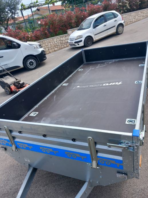 Auto prikolica ,dvije osovine ,dimenzije tovarnog prostora 300x150,prikolica je gotovo nova dva puta koristena registrirana tri godine,cjena 1600 +PDV=2000 Eur,registrirana je kao laka prikolica 750 kg svake tri godine registracija,jako čvrsta konstrikcija realna nosivost 1000 kg+,kupljena je u 11/2022