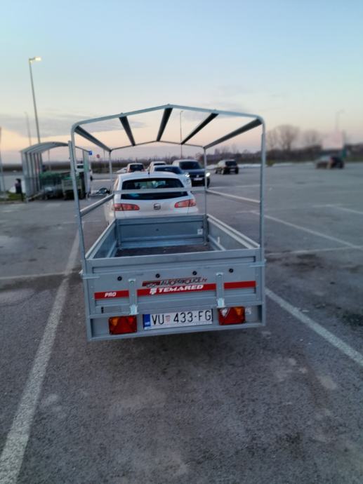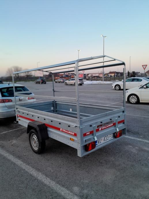 Temared prikolica stara jednu godinu, par puta koristena, garazirana, cerada ne koristena ide uz prikolicu.