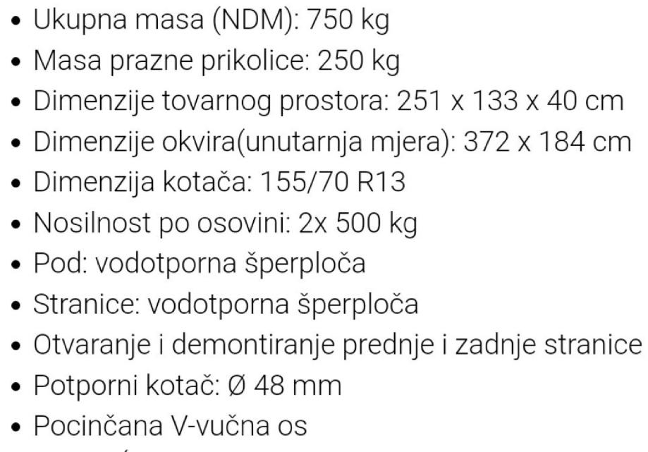 uz predujam unaprjed od 25. % cjene prikolicu dovozimo do vas ostatak platite kod dovoza do 250.km.,