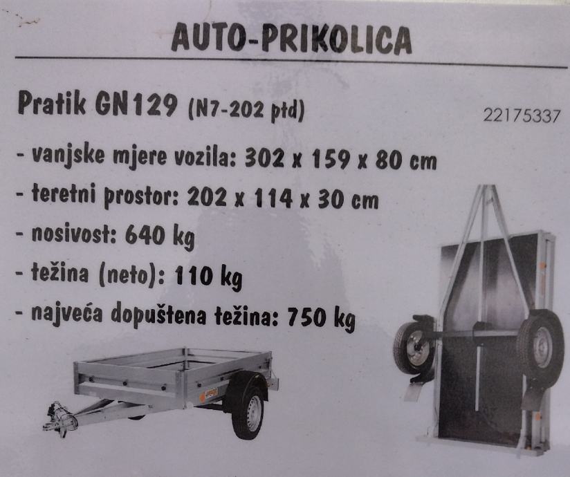 AUTO PRIKOLICA, NOVA, REG.3.godine., 202x114x30 koš,za 1050.€ fiksno !