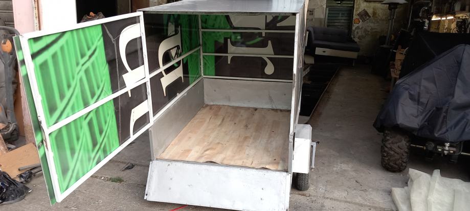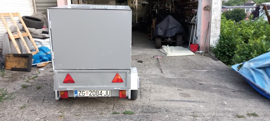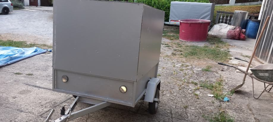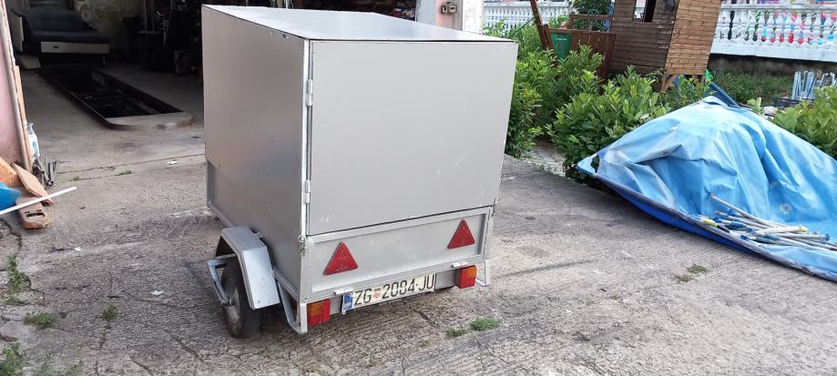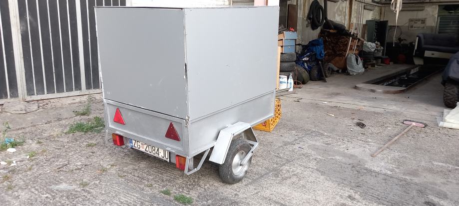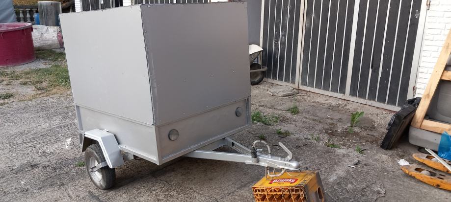 Auto prikolica Tehnika s nadogradnjom, zatvoreni kofer. Nadogradnja metalna konstrukcija I alu lim...lagana....nova struja....dimenzije 100x125 i visina 108...gume 4.00x8c (CARGO guma, izgleda ko guma na tačkama, no nije, ovo je cargo guma za prikolice, za neupucene)...registrirana do slijedeće godine. Cijena 600 eura....moze zamjena za ugostiteljsku perilicu suđa, motocikl gpz ili slično, može zamjena I za drugu prikolicu veću s papirima a da je u lošem stanju.....