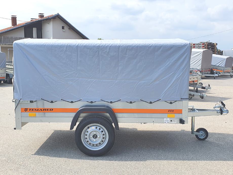 Auto prikolica Temared ECO 2312+arnjevi+cerada (230x126x110 cm) 750 kg