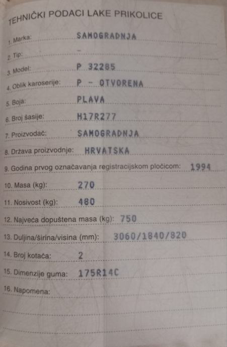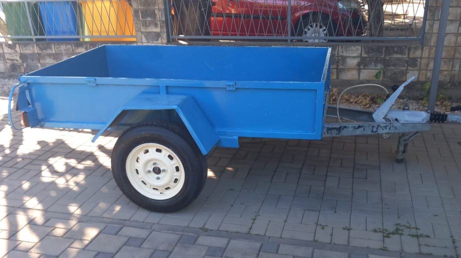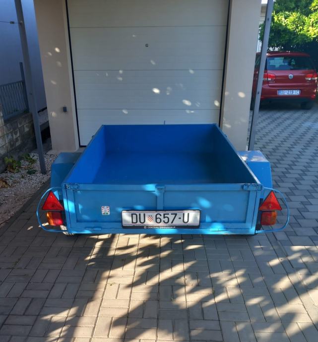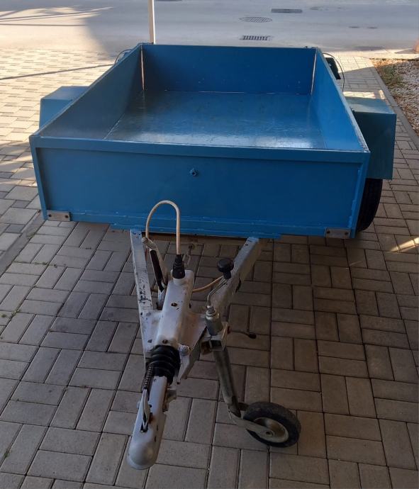 Izvrsno očuvana laka autoprikolica sa naletnom kočnicom, amortizerima pri točku, ručnom kočnicom i pomoćnim kotačom za lakše rukovanje izrađena od komplet podvozja adria kamp kućice na koju je izrađen limeni sanduk 197x123x35 cm.