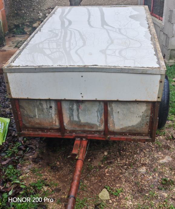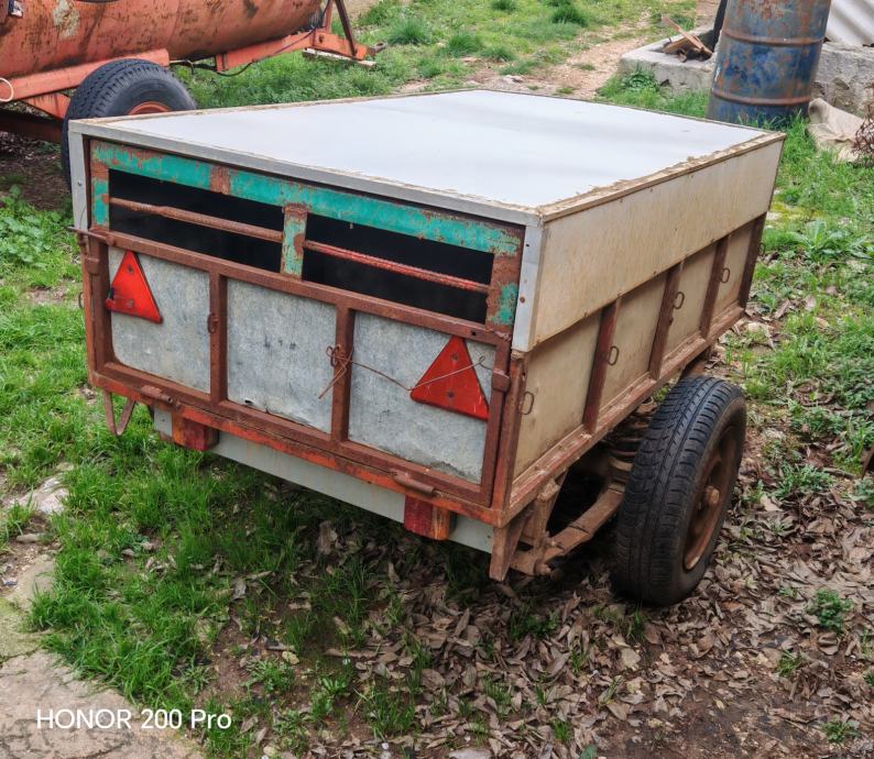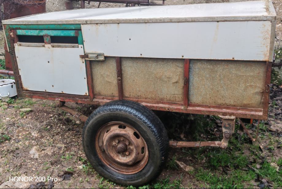 Stara auto prikolica koristena za prijevoz pasa...cvrsta, signalizacija ok,dva prostora s zasebnim ulazom...nemoguce registrirat